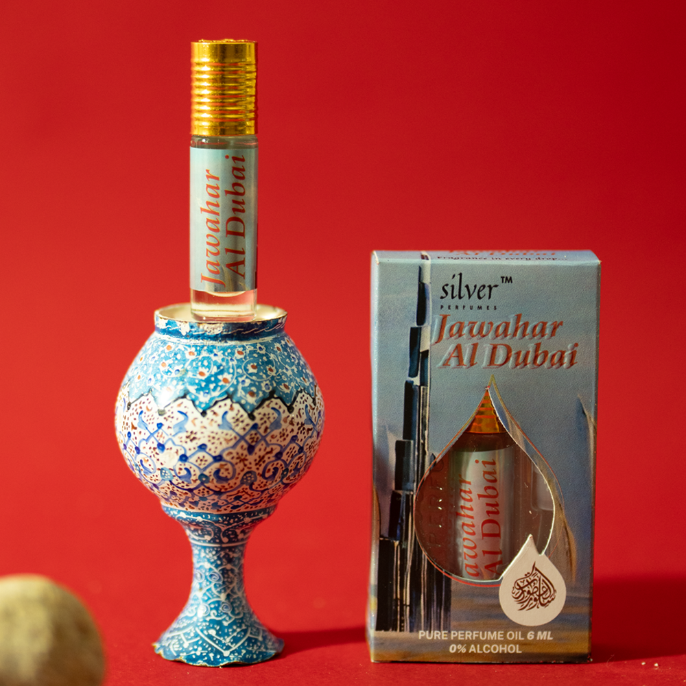 Jawahar Al Dubai is an expertly crafted oriental floral fragrance designed for both women and men. With top notes of saffron and jasmine, heart notes a blend of Amberwood, ambergris, and hiding and base note of cedar, sugar and oak moss, creating a warm, sensual, and enduring finish.